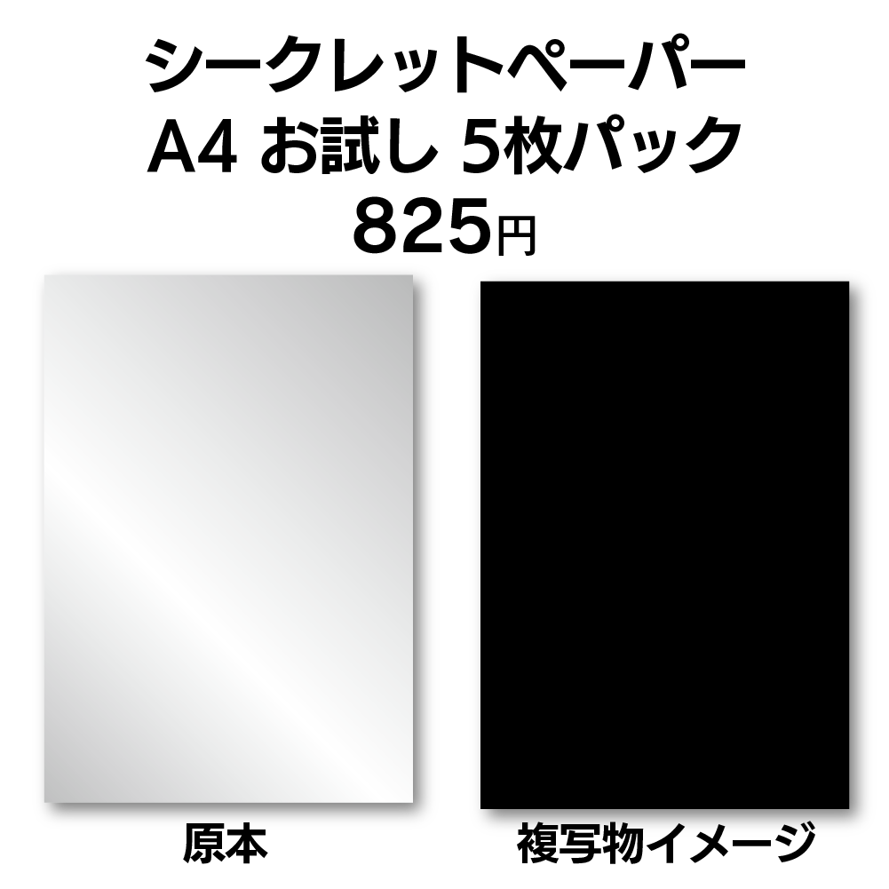 銀の折り紙のような見た目で、普通のコピー用紙とは光の反射角度が違うため、コピーされた紙が全面真っ黒になります。